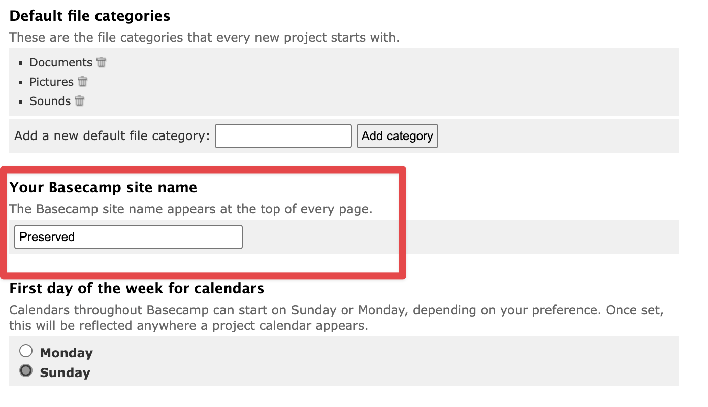 You can change the categories for messages and for files that'll affect every new project. This won't change the categories on existing projects. To change existing project categories, use the category links in that particular project